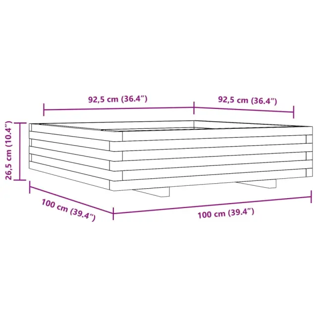 Vrtno cvetlično korito - Lonček za rože voščeno 100x100x26,5 cm trdna borovina