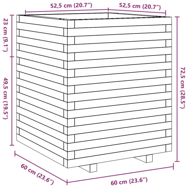 Vrtno cvetlično korito - Lonček za rože voščeno 60x60x72,5 cm trdna borovina