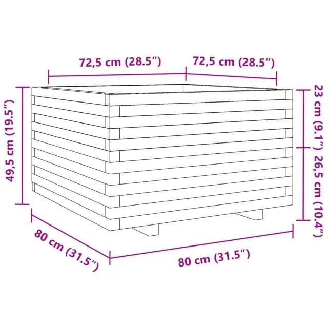 Vrtno cvetlično korito - Lonček za rože 80x80x49,5 cm trdna borovina