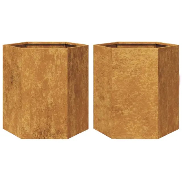 Vrtno korito - Lonček za rože 2kosa šestkotnik 46x40x45cm jeklo vremenske vplive