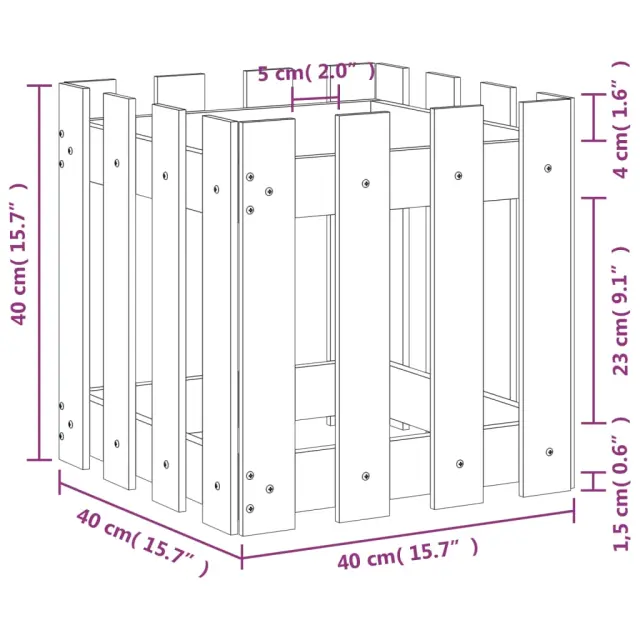 Vrtno korito - Lonček za rože z ograjico 40x40x40 cm impregnirana borovina