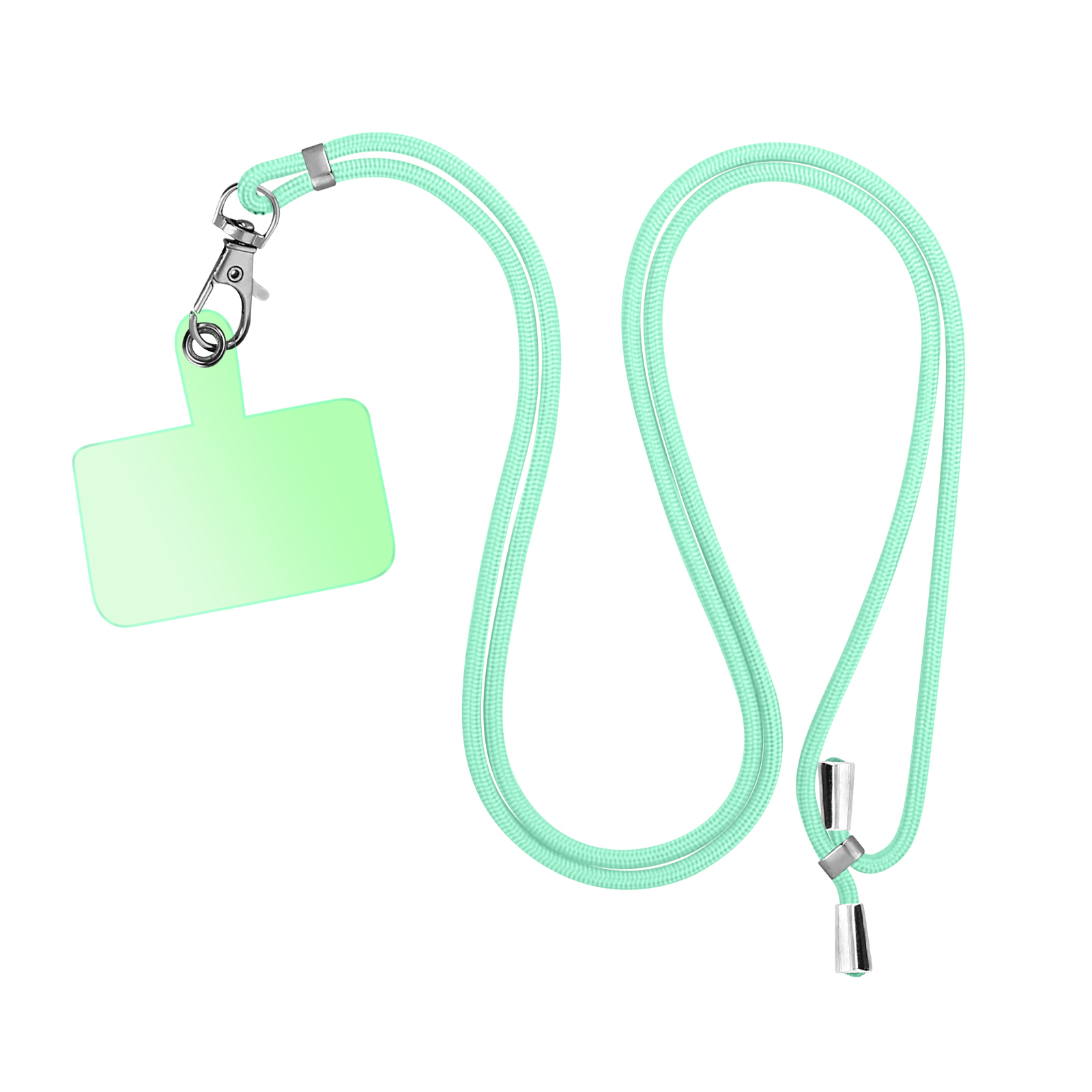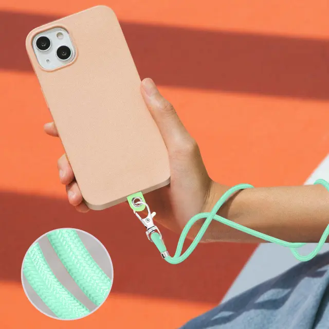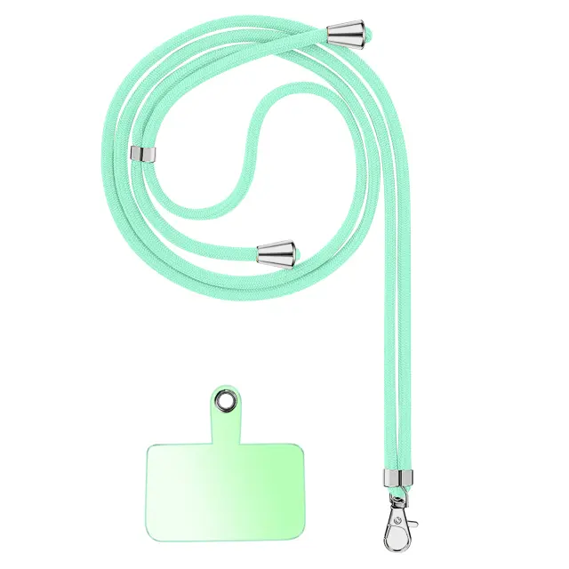 Univerzalni zeleni kabel, da bo vaš pametni telefon na dosegu roke, medtem ko bodo vaše roke proste. Pletena najlonska vrvica z obrockom iz nerjavecega jekla. Nastavljiva je na velikost 90 cm in je primerna za vse vrste etuijev in školjk.