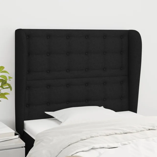Vzglavna omarica - Nočna omarica - Posteljna omarica z ušesi črno 103x23x118/128 cm blago