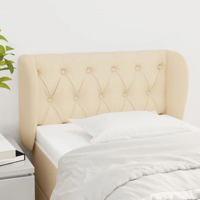 Vzglavna omarica - Nočna omarica - Posteljna omarica z ušesi krem 83x23x78/88 cm blago