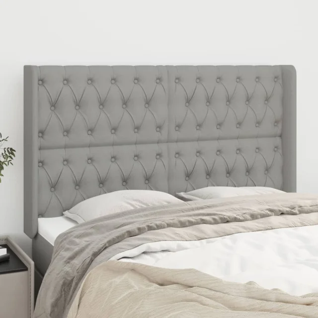 Vzglavna omarica - Nočna omarica - Posteljna omarica z ušesi svetlo sivo 163x16x118/128 cm blago