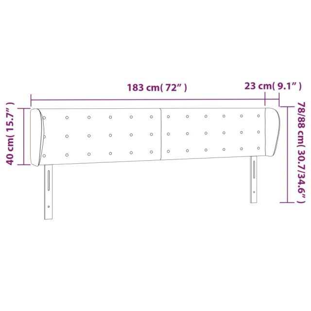 Vzglavna omarica - Nočna omarica - Posteljna omarica z ušesi temno sivo 183x23x78/88 cm žamet