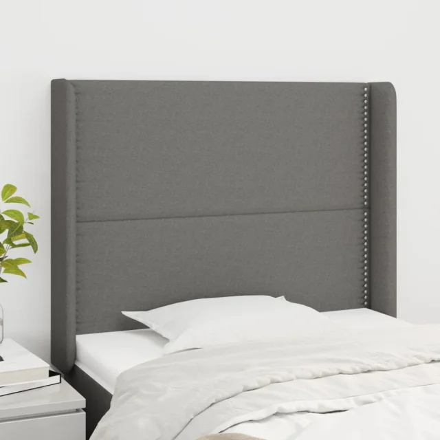 Vzglavna omarica - Nočna omarica - Posteljna omarica z ušesi temno sivo 83x16x118/128 cm blago