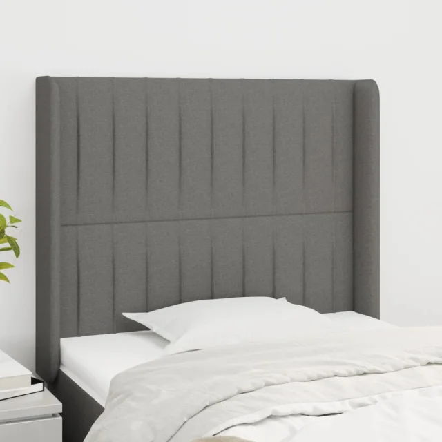 Vzglavna omarica - Nočna omarica - Posteljna omarica z ušesi temno sivo 93x16x118/128 cm blago