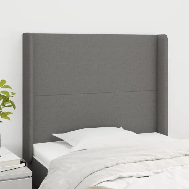 Vzglavna omarica - Nočna omarica - Posteljna omarica z ušesi temno sivo 93x16x118/128 cm blago