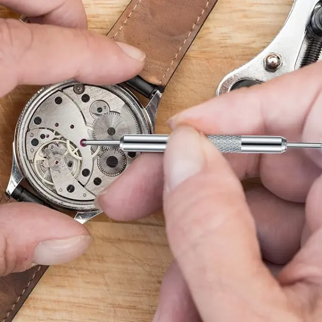 Enostaven za uporabo: Izmerite uro ali zapestnico, da določite pravilno velikost vzmetnega zatiča. S priloženim orodjem je nato enostavno popraviti uro in zamenjati zapestnico.