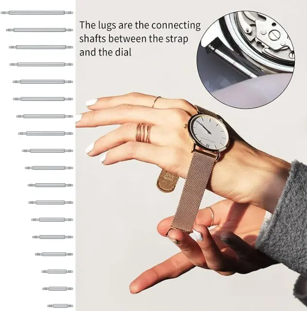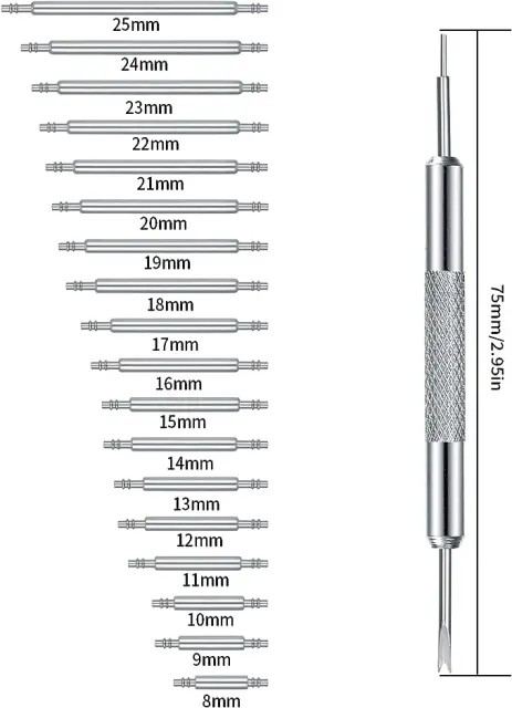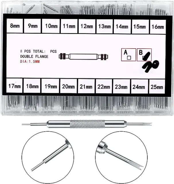 Velik komplet s številnimi velikostmi: Ti zatiči za ure v različnih velikostih so primerni za paščke za ure s širino 8–25 mm, tako da imate primerno velikost vedno pri roki.
