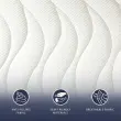 Notranja struktura z medsebojno povezanimi celicami omogoča stalno kroženje zraka, preprečuje nabiranje vlage in pomaga ohranjati vzmetnico svežo in suho. Visoka zračnost jedra, skupaj z zaščitnim pregrinjalom z 3D tkaninskim vložkom na stranski strani, izboljšuje splošno prezračevanje vzmetnice in zmanjšuje tveganje za alergije ali nelagodje zaradi vlage.