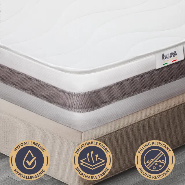 LEŽIŠČE IZ SPOMINSKE PENE WATERFOAM. Ležišče je izdelano iz ekspandirane poliuretanske pene na vodni osnovi, zato se zlahka prilagodi pritisku, kar omogoča popolno razporeditev telesne teže. Kljub temu gre za ležišče z visoko trdnostjo, primerno za tiste, ki želijo zagotoviti poravnanost hrbtenice med spanjem, še posebej pri spanju na trebuhu ali hrbtu. LEŽIŠČE ESSENTIAL. The White Stone ponuja ležišče iz linije Essential v različnih višinah, da zadosti potrebam po praktičnosti, prostoru in počitku. Naš cilj je bil ustvariti ležišče, ki je resnično osnovno, primerno za vse vrste proračunov, ne da bi pri tem zanemarili splošne standarde udobja in varnosti. EKOLOŠKO TRAJNOSTNI MATERIALI. Ležišče velikosti 80 x 190 iz pene Waterfoam zagotavlja popolno odsotnost CFC-jev in drugih škodljivih snovi, kot so formaldehid, živo srebro ali težke kovine – za varen izdelek, tako za vas kot za okolje. The White Stone ne uporablja zgolj okolju prijaznih surovin, temveč tudi pošilja svoja ležišča v praktičnem vakuumsko zapakiranem pakiranju, kar zmanjša velikost škatle in posledično tudi okoljski vpliv emisij CO2. ZRAČNO LEŽIŠČE. K lastnostim zračnosti pene na vodni osnovi smo dodali še prevleko iz 3D tkanine, ki je znana po svoji izjemni zračnosti, da zagotovimo nenehno kroženje zraka in odvajanje vlage, ki jo proizvaja telo. Poleg tega je na obeh straneh ležišča polnilo iz 190 g/m² vate za dodaten občutek udobja. VARNA DOSTAVA IN STALNA PODPORA. Ležišča The White Stone so prepognjena na polovico, zvita in vakuumsko pakirana, kar zagotavlja praktičnost, enostavnost prevoza in visoko raven higiene. Ko odstranite ležišče iz vakuumske embalaže, bo potrebnih 24-72 ur, da popolnoma povrne svoje lastnosti in prvotno višino. Za vsa vprašanja je naša služba za stranke vedno pripravljena ponuditi vso potrebno pomoč, da zagotovimo najboljšo možno nakupovalno izkušnjo.