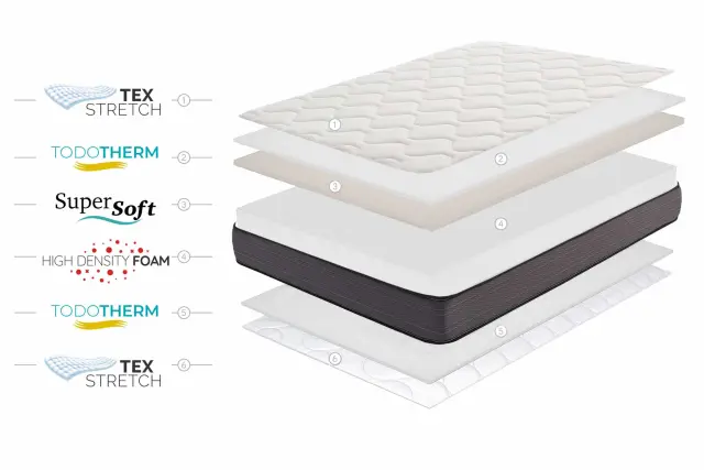 Vzmetnica ima tehnologijo Duo-System, ki zagotavlja dve neodvisni trdnosti na vsaki strani: