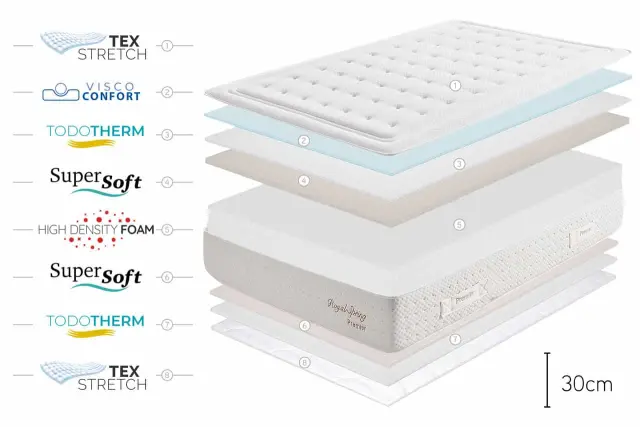 Vzmetnica Royal Spring Premier Hr 30 cm je idealna za tiste, ki si želijo vse: visoko prilagodljivost in veliko udobja. Sestavljena je iz visoko odpornih penastih materialov in ojačana, da prenese velike obremenitve, tudi ko sedite na njej.