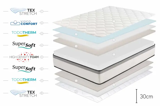 Spominska pena + Viscosoft pena + Biotherm vlakna: 5 cm