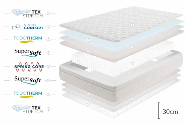 Njeno jedro je sestavljeno iz 235 neodvisnih vzmeti/m², ki zagotavljajo prilagodljivost na vsakemu delu vzmetnice. Te vzmeti omogočajo, da se teža porazdeli in se tako zagotovi prilagodljivost vsakemu delu telesa.