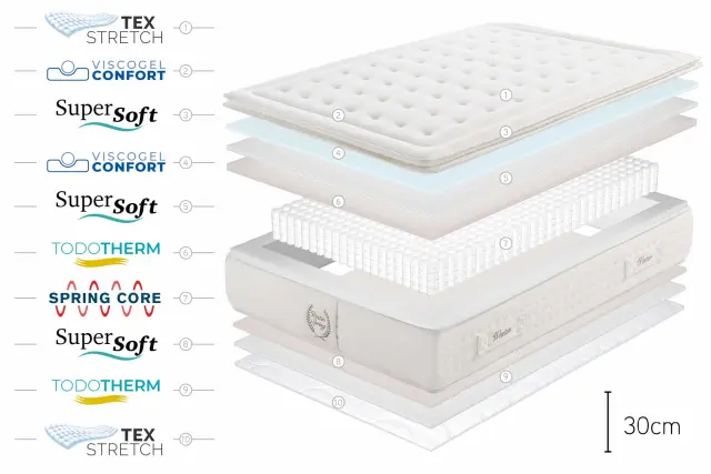 Zluksuzno hotelsko vzmetnico Westin Spring boste dobili hibridni sistem spanja z žepnimi vzmetmi in gel-spominsko peno, s katero boste vsak dan uživali v mirnem spanju.