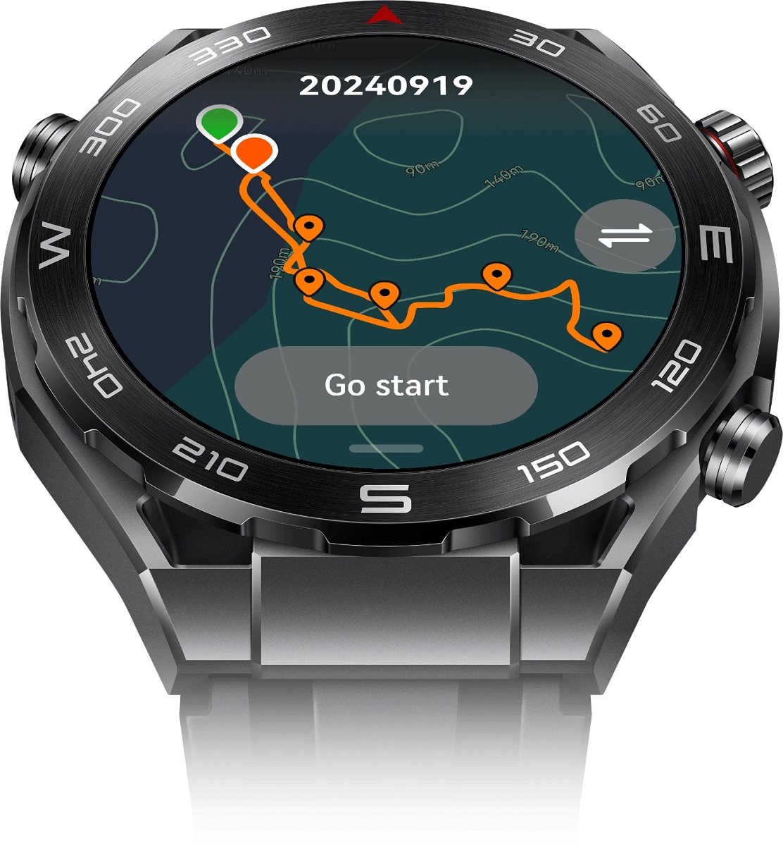 S pritiskom levega gumba zaženete način Expedition Mode (ekspedicijski način), v katerem so ključni podatki, kot so nadmorska višina, srčni utrip in razdalja, prikazani na zaslonu za lažje iskanje. Posebej zasnovan način zatemnitve omogoča enostavno branje v slabo osvetljenih okoljih, ne glede na to, ali gre za večer ob tabornem ognju ali pohod pod zvezdami.