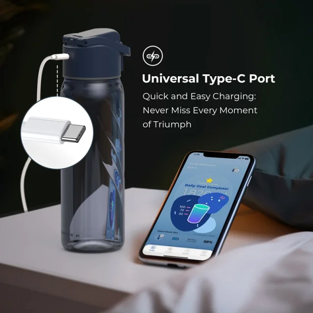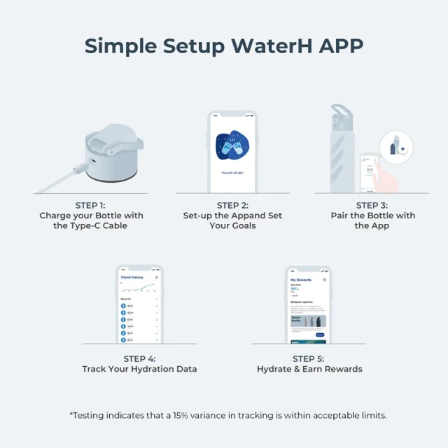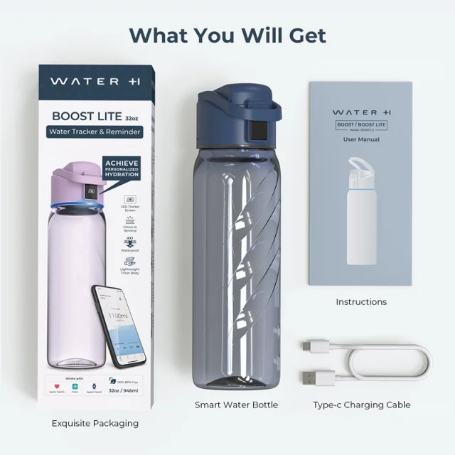 WaterH BOOST Lite - Pametna steklenica za vodo z opomnikom za pitje vode in sledilnikom vode - 946 ml - Magnetitno modra