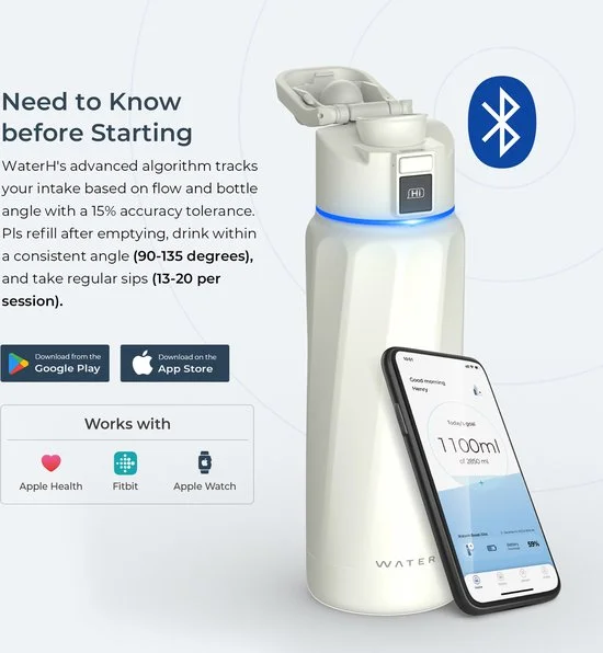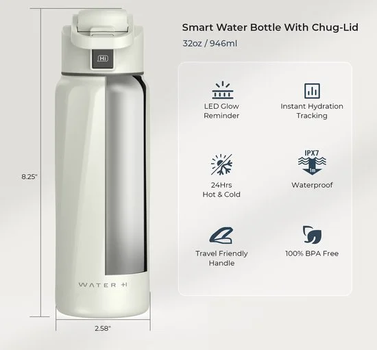 WaterH BOOST - Pametna steklenička za vodo z opomnikom za pitje vode in sledilcem vode - Dvostenska jeklena steklenička za pitje - Široka odprtina - 9