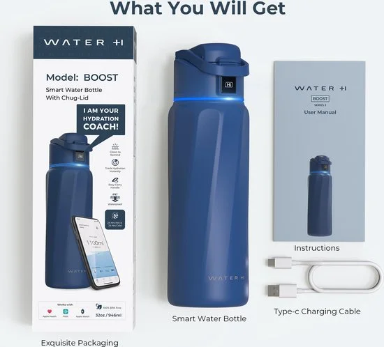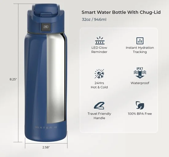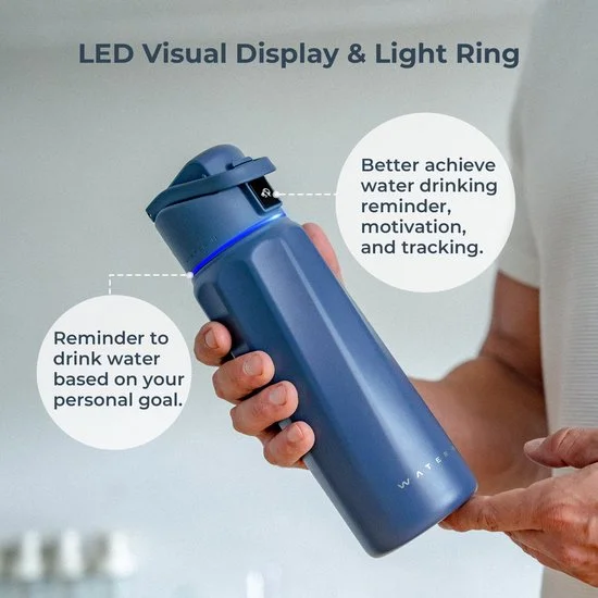 WaterH BOOST - Pametna steklenička za vodo z opomnikom za pitje vode in sledilcem vode - Dvostenska jeklena steklenička za pitje - Široka odprtina - 9