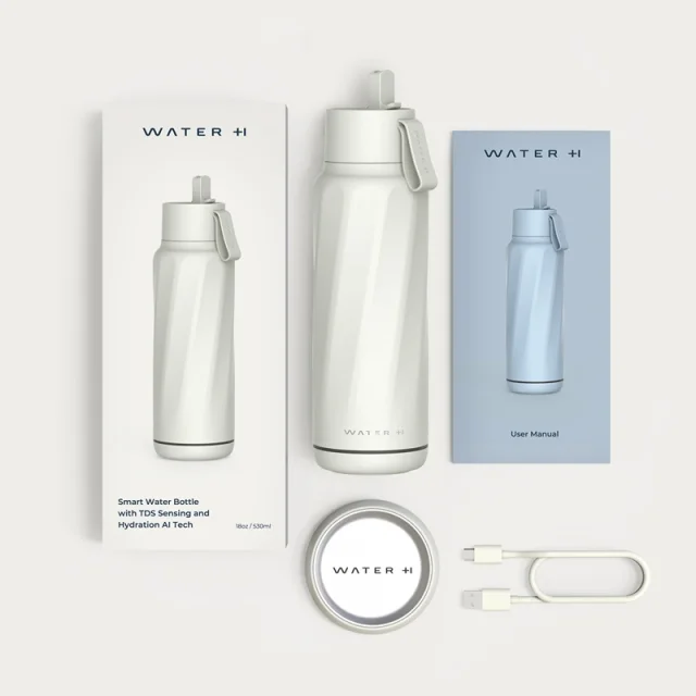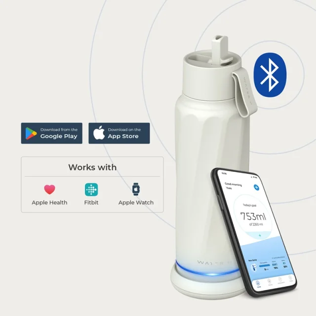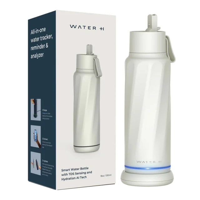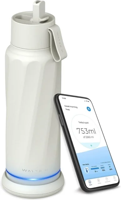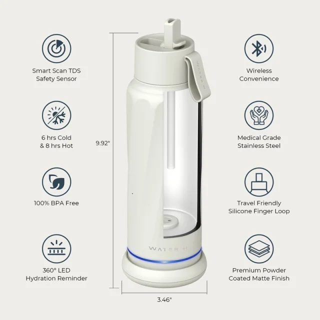 WATERH Vita Izolirane pametne steklenice za vodo s slamico, sledenje porabi, analizator varnosti vode, LED opomnik, brez BPA, 530 ml, dvostenska vakuu