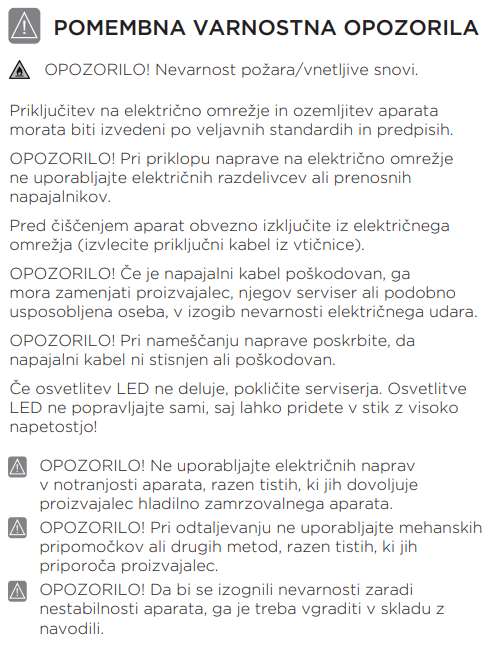 Slike o varnosti izdelka vsebujejo opozorila na embalaži izdelka in lahko vključujejo ključne varnostne informacije, povezane z določenim izdelkom.