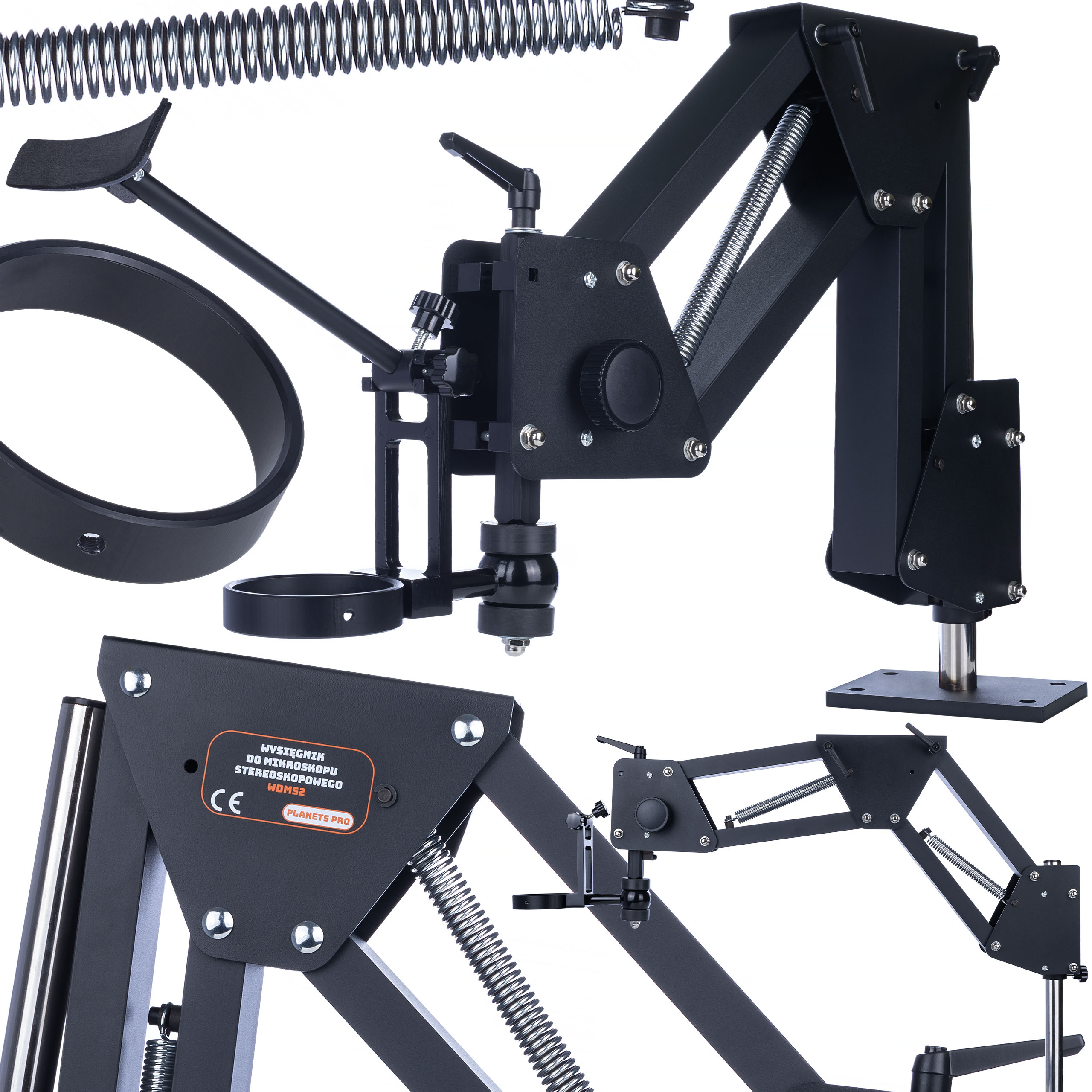 Ta praktična rešitev omogoča enostavno namestitev mikroskopa brez potrebe po dodatnih nosilcih ali spremembah. To uporabniku zagotavlja udobje, prihranek časa in gotovost, da bo oprema stabilno in varno nameščena, ne glede na znamko mikroskopa.