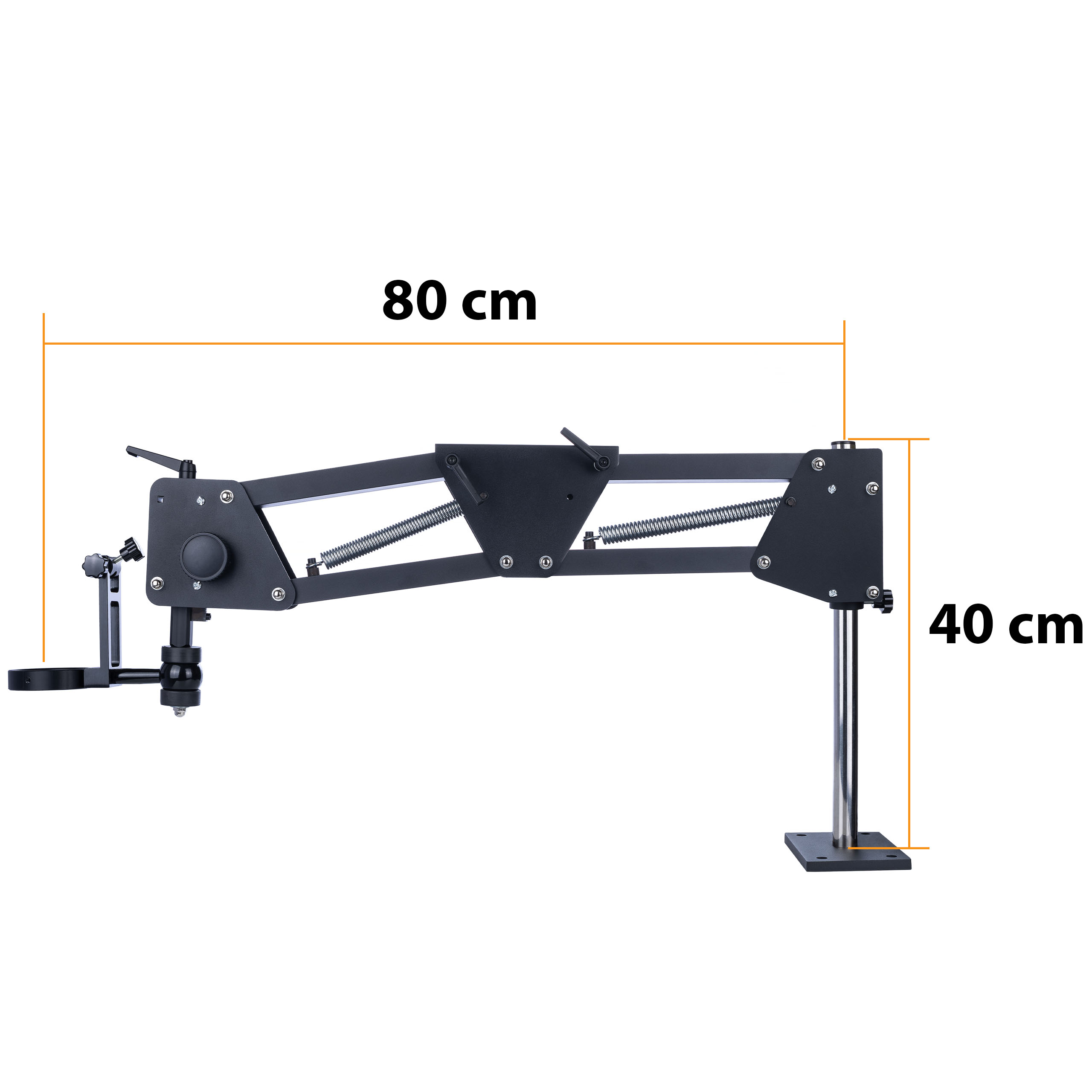 ✅ Prilagodljiv različnim nalogam: Dolžino roke je mogoče nastaviti od 35 cm do 80 cm, skupna višina nosilca pa je 40 cm, kar omogoča prilagodljivo prilagajanje posebnim delovnim zahtevam.