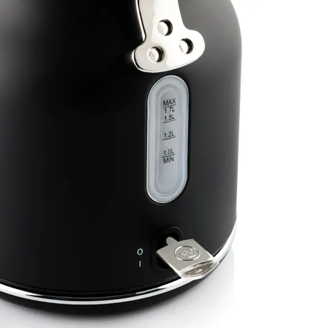 Westinghouse Retro Black grelnik vode vam omogoča hiter način kuhanja vode za popoldanski čaj, kavo ali juho. Voda zavre z bliskovito hitrostjo zahvaljujoč visoki moči 2200 W. Kotliček ima tudi integrirano lučko, ki se vklopi, ko voda začne vreti. Ima tudi samodejni izklop, ko voda neha vreti. Zahvaljujoč odstranljivemu filtru proti vodnemu kamnu in sistemu zaščite pred suhim kuhanjem je kuhalnik tudi varen za uporabo.