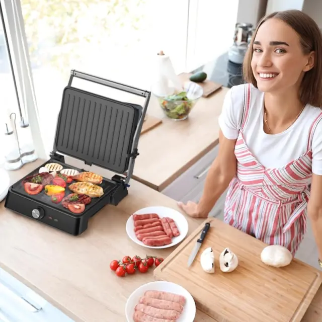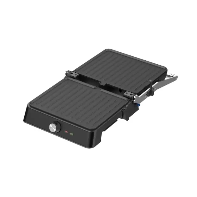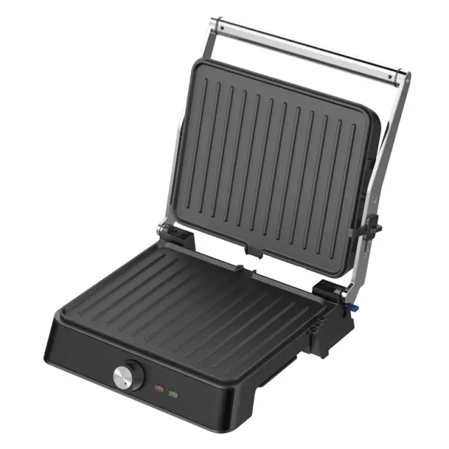 Nastavljiva temperatura, Pladenj za odvečno maščobo, Kontrolna lučka, Valovita površina, Toplotno izoliran ročaj, Nastavljiva višina