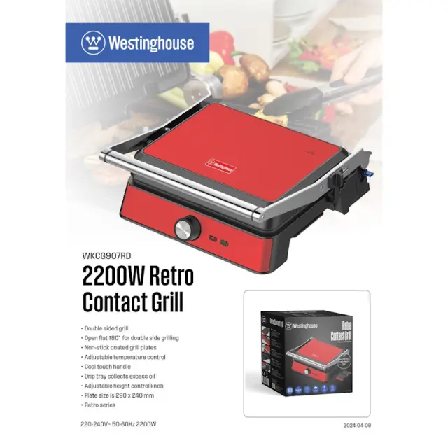 Nastavljiva temperatura, Pladenj za odvečno maščobo, Kontrolna lučka, Valovita površina, Toplotno izoliran ročaj, Nastavljiva višina
