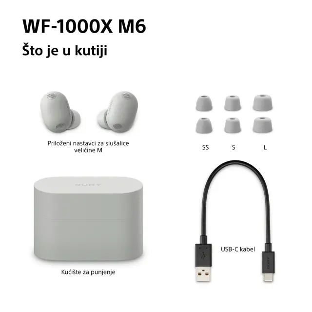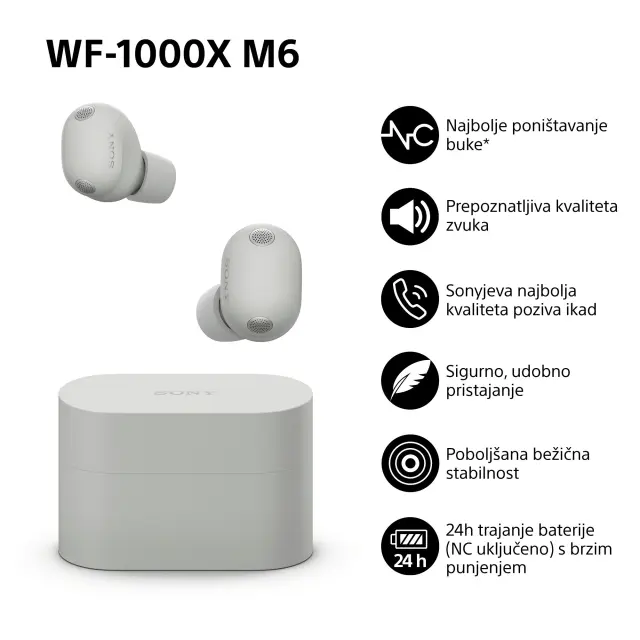 Slušalke SONY WF-1000XM6/S, brezžične, odpravljanje šumov, srebrne