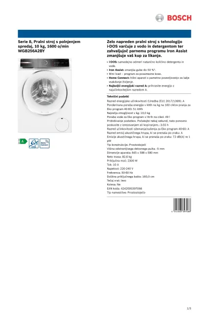 Odprta emb - BOSCH WGB256A2BY pralni stroj