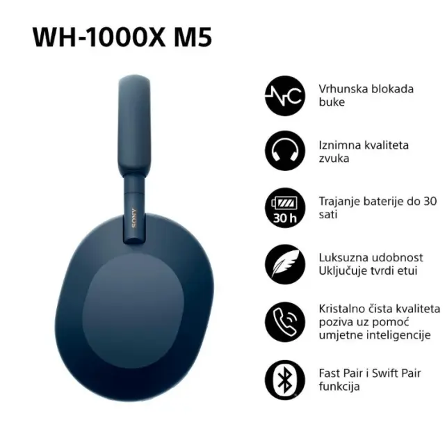 SONY WH-1000XM5 Headphones Midnight Blue Noise Cancelling slušalke