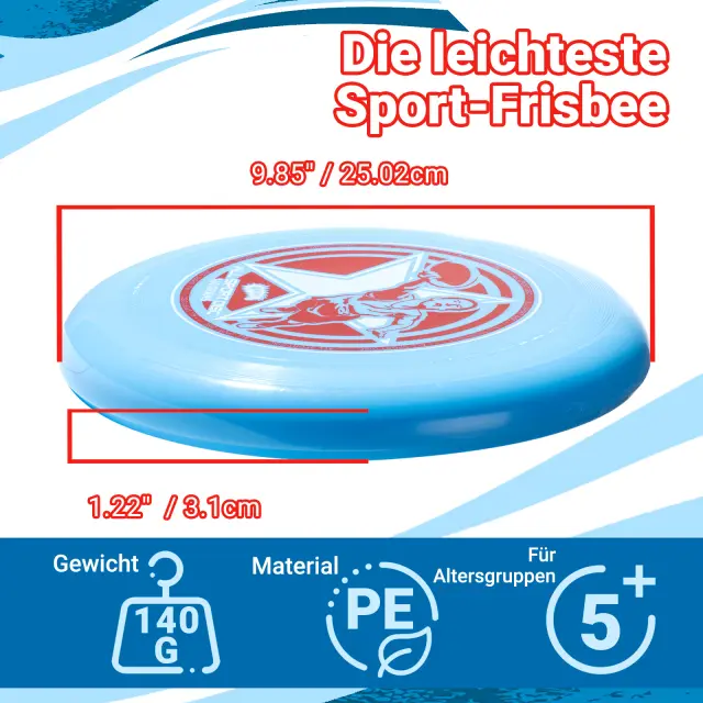 Trpežen in varen PE material - Zasnovan iz vrhunskega in varnega PE za dolgotrajno uporabo.Ta frizbi zdrži intenzivne igre in družinska druženja.||Lahko metanje in lovljenje - Odličen za priložnostno igro, tekmovalne igre in vadbo na prostem.Ne glede na to, ali igrate prvič ali ste profesionalni igralec, njegova uravnotežena zasnova vsakič zagotavlja lahkotno metanje in lovljenje.||Vsestranska zabava kjer koli - Ne glede na to, ali igrate na plaži, igrišču ali dvorišču, zabave ni konec.||Lahka in družinam prijazna - Z le 140 g je idealna za otroke od 5.Leta starosti in odrasle.Z otrokom preživite športni čas med starši in otroki ter jih spodbudite, da začutijo veselje do frizbija.||Večfunkcijska pripravljenost za igro - obvladajte frizbi golf, metanje na plaži in druge igre!Zagotavlja več iger, ki jih lahko igrate vi in vaš prijatelj.