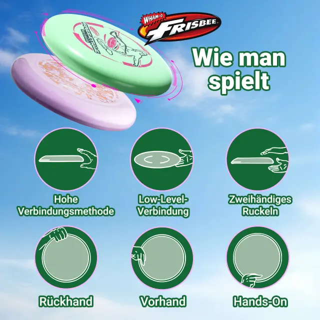 Enostavno obvladajte freestyle - Frisbee Freestyle Wham-O je zasnovan za gladke mete in zanesljive ulove, zato vam omogoča vrhunsko izkušnjo pri igranju frisbeeja.||Premična vzdržljivost za igro - Napolnjen je z vrhunskim PE in je odporen na plažo in pesek, kar zagotavlja trajno igralno izkušnjo.||Prilagodljiv dizajn za ustvarjalnost - Z vsestranskimi meti in ulovi uživajte v neskončni ustvarjalnosti.Odlična za vadbo trikov s frizbijem kjerkoli.||Perfekten za vse ravni znanja - Od prvega igralca do profesionalcev prostega sloga in družinske igre, z uravnoteženo obliko in nedrsečim oprijemom bo vsaka tekma in igra vznemirljiva in prijetna.||Uživite družinsko zabavo - Star je za 5+, zato lahko uživate v družinski igri na dvorišču, vrtu ali plaži.