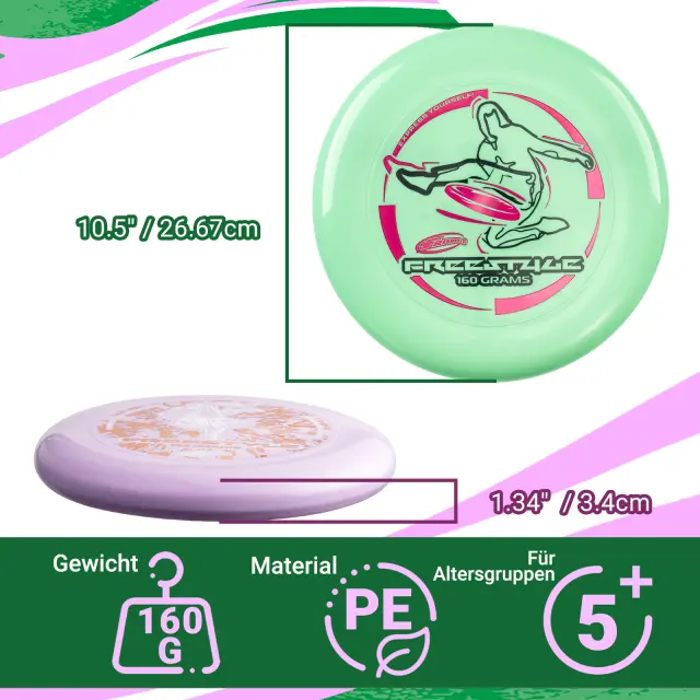 Enostavno obvladajte freestyle - Frisbee Freestyle Wham-O je zasnovan za gladke mete in zanesljive ulove, zato vam omogoča vrhunsko izkušnjo pri igranju frisbeeja.||Premična vzdržljivost za igro - Napolnjen je z vrhunskim PE in je odporen na plažo in pesek, kar zagotavlja trajno igralno izkušnjo.||Prilagodljiv dizajn za ustvarjalnost - Z vsestranskimi meti in ulovi uživajte v neskončni ustvarjalnosti.Odlična za vadbo trikov s frizbijem kjerkoli.||Perfekten za vse ravni znanja - Od prvega igralca do profesionalcev prostega sloga in družinske igre, z uravnoteženo obliko in nedrsečim oprijemom bo vsaka tekma in igra vznemirljiva in prijetna.||Uživite družinsko zabavo - Star je za 5+, zato lahko uživate v družinski igri na dvorišču, vrtu ali plaži.