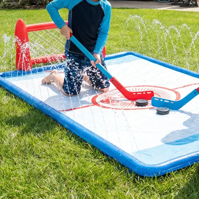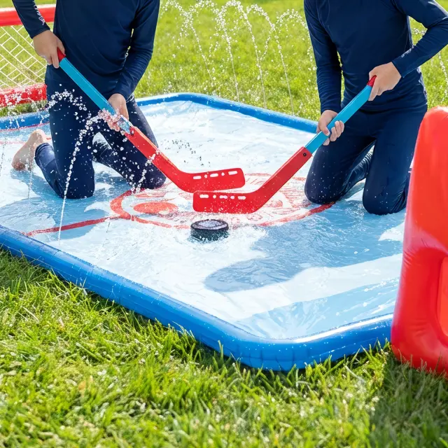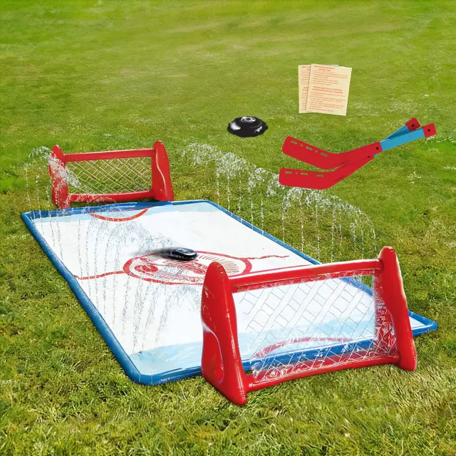 Pripravite se na najbolj prijetno zabavo na vodi na prostem, saj bo ta komplet za hokej na vodi s koleni znamke Wham-O vaše dvorišče spremenil v oazo pljuskajočega vznemirjenja! Doživite vznemirjenje drsenja in doseganja golov, medtem ko se ohladite pod dvojnim slapom. Ta komplet hokejskih golov za dvorišče, ki je popoln za otroke, stare od 5 do 12 let, obljublja ure vznemirljive zabave na soncu. Z dvema napihljivima goloma, dvema hokejskima palicama in enim napihljivim ploščkom se zabava nikoli ne konča. Ne glede na to, ali gre za rojstnodnevno zabavo, družinsko srečanje ali le za dan igre na prostem, bo hokejski gol za vodo Slip N Slide zagotovo uspešnica.