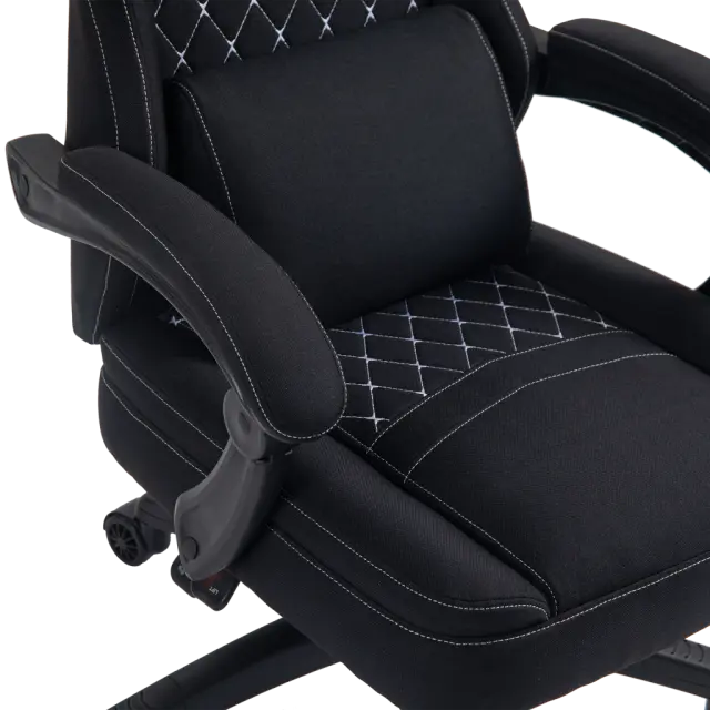 Naslonjala za roke: 1D nastavitev kota: Da Zapora kota nagiba: Da Nagib: 90~135° Velikost kolesca in material: 60 mm, plastika Vzglavnik in vzglavnik za hrbet: Da Višina sedeža (cm): 48~56 Velikost sedeža (cm): 52x51 Naslon višina (cm): 83 Širina ramen (cm): 58 Barva: Črna Material prevleke za stol: Tekstil Material okvirja: Kovina + Les Mere (cm): 50x63x123~131 Vrsta podnožja: 350 mm, plastika Obremenitev (kg): 120 Potrebna namestitev : Da
