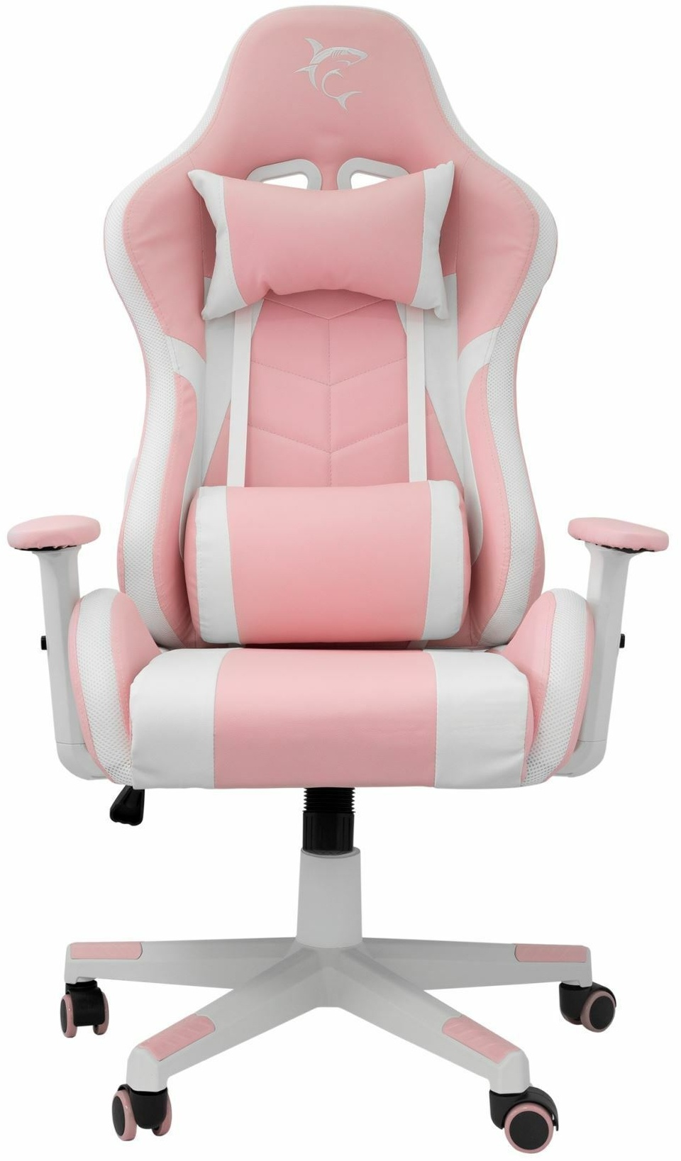White Shark ROXY Gaming stol roza/bele barve omogoča daljši čas sedenja brez bolečin v hrbtu. Ob stolu dobite tudi mehki podloženi blazinici za vrat in križ. Višino sedenja lahko nastavite z zračno vzmetjo in majhnim ročajem na desni strani...