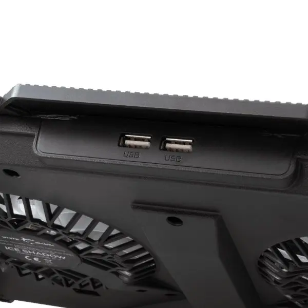 Velikost prenosnika: 17,3'' Dimenzije ventilatorja (mm): 140x140x15 Hitrost ventilatorja (RPM): 1400 RPM ±10% Pretok zraka (CFM): 75 Raven hrupa (dB): 10 dBA Nastavitev nagiba: Da (5 položajev) USB-vozlišče: D Vmesnik: USB 2.0 Delovna napetost (V): 5 Barva: Črna Material: Aluminij - zgornja plošča, plastika - ohišje Dimenzije (mm): 480x295x55 Teža (g): 1200 Število USB vrat: 2