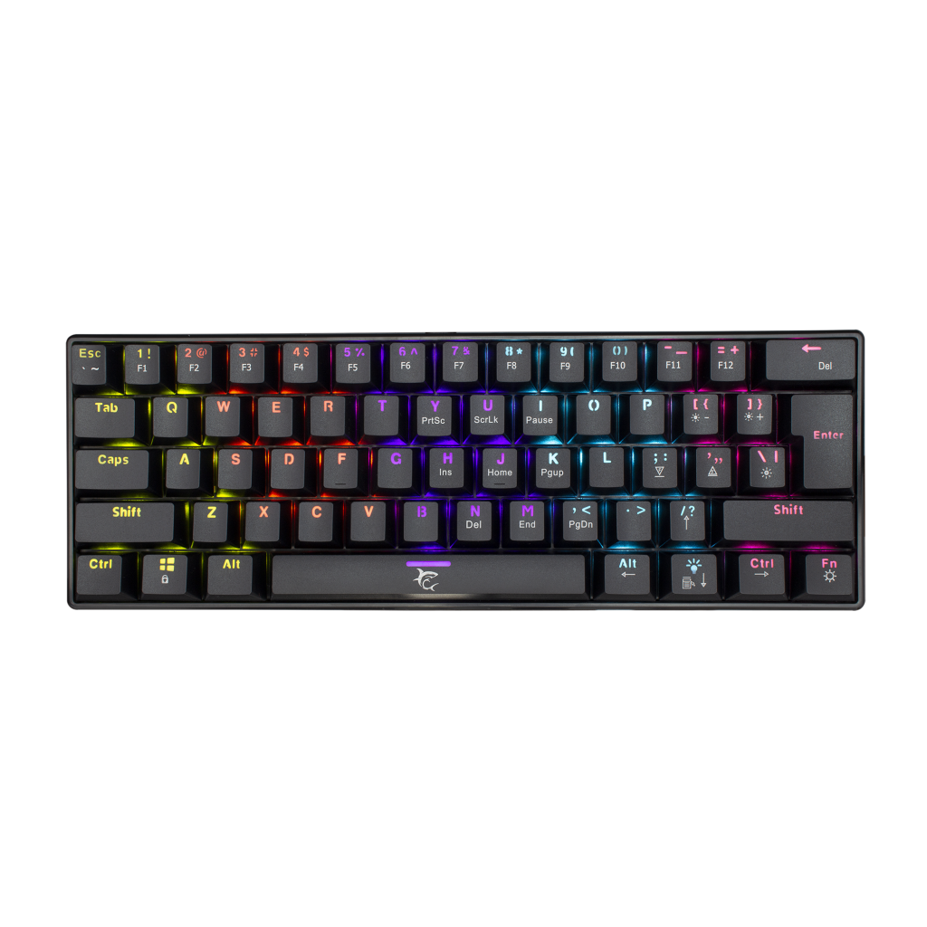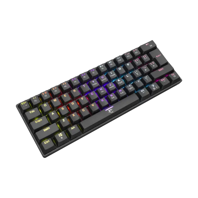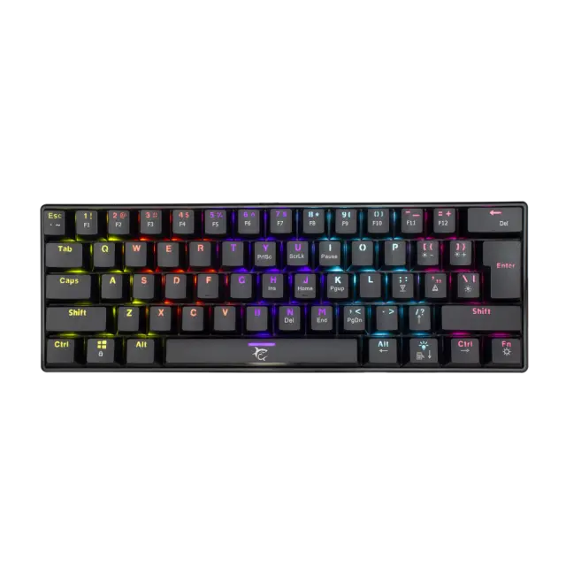 Število tipk: 61 Razporeditev tipk: Kompaktno Vrsta stikala: Mehansko - OUTEMU (rjava) Življenjska doba: Več kot 50 M pritiska Pritisk tipk: 60 g +/- 15 g Razdalja premikanja tipk: 4 mm +/- 0,5 mm Anti-Ghosting: 61 tipka Osvetlitev: LED - učinek mavrice Barva: Črna Material: Plastika Vmesnik: Tip C - USB 2.0 (snemljiv) Dodatne dvižne noge: Da Dolžina kabla (m): 1,5 Pleten kabel: Da Razpoložljive postavitve: US/HR/SRB Mere (mm) ): 291x101x39 Teža (g): 556 +/- 20g Ostalo: Odzivni čas - 8 milisekund