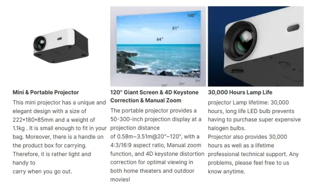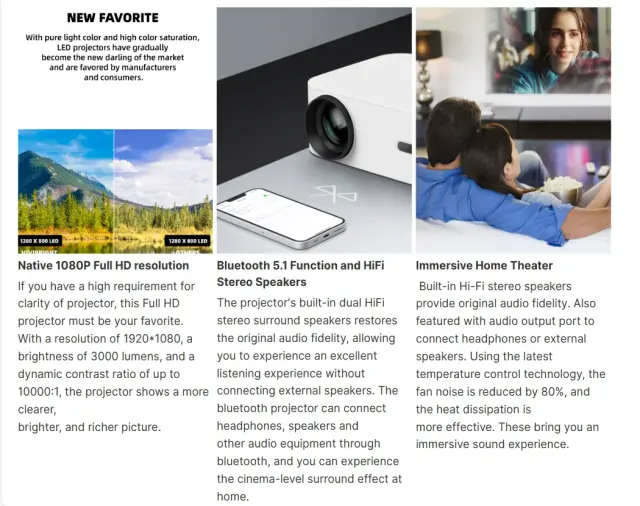 Visoka ločljivost: mini projektor s polno HD ločljivostjo reproducira jasne in podrobne slike in je združljiv s 4K.