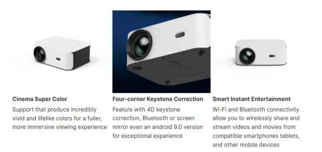 Povezava Bluetooth ali Wi-Fi: Ta pametni projektor podpira povezavo Wi-Fi in povezavo Bluetooth. Enostavno in prilagodljivo se poveže z vašimi napravami.