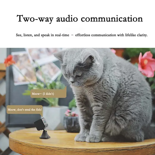 Izjemen nadzor hišnih ljubljenčkov: Prosimo, upoštevajte: to niso originalni deli. Ta WiFi HD kamera ponuja izjemne zmogljivosti nadzora hišnih ljubljenčkov, ki vam omogočajo, da pozorno spremljate svoje kosmate prijatelje, tudi ko ste odsotni. Z visoko ločljivostjo videa lahko jasno vidite vsako podrobnost dejavnosti vašega hišnega ljubljenčka. Funkcija dvosmernega pogovora vam omogoča komunikacijo s svojim hišnim ljubljenčkom, ga pomirjate s svojim glasom ali dajete ukaze. S širokokotnim objektivom in infrardečo nočno vizijo lahko spremljate svojega hišnega ljubljenčka dan in noč, kar zagotavlja njegovo varnost in dobro počutje. Funkcija zaznavanja gibanja vas opozori na vsako nenavadno dejavnost, kar zagotavlja dodatno varnost in mirnost. Popolna za lastnike hišnih ljubljenčkov, ki želijo ostati povezani s svojimi hišnimi ljubljenčki, ta kamera ponuja celovito rešitev za oddaljeni nadzor hišnih ljubljenčkov.