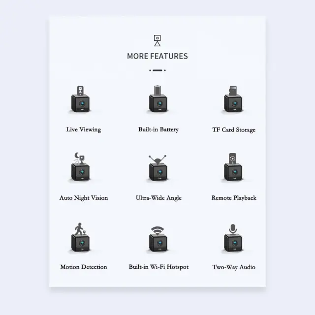 Priročna shramba v oblaku: Prosimo, upoštevajte: to niso originalni deli. Ta WiFi HD kamera ponuja priročne možnosti shranjevanja v oblaku, ki vam omogočajo varno shranjevanje video posnetkov in dostop do njih od kjer koli. S shranjevanjem v oblaku vam ni treba skrbeti, da boste izgubili posnetke zaradi poškodovanih ali ukradenih pomnilniških kartic. Kamera podpira tudi shranjevanje na pomnilniško kartico, kar zagotavlja varnostno kopijo za vaše posnetke. Storitev shranjevanja v oblaku ponuja brezplačno 7-dnevno preizkusno obdobje, ki vam omogoča, da izkusite prednosti shranjevanja v oblaku, preden se zavežete naročnini. S shranjevanjem v oblaku lahko preprosto delite svoje video posnetke z družino in prijatelji ali jih uporabite kot dokaz v primeru varnostnega incidenta. Ta kamera ponuja prilagodljivo in priročno rešitev za shranjevanje in dostop do vaših video posnetkov.