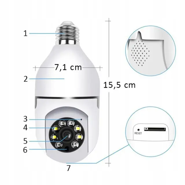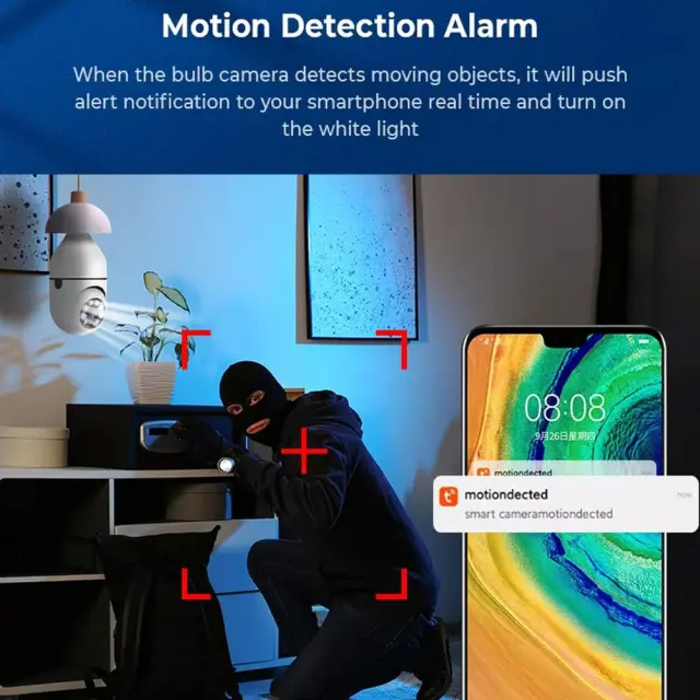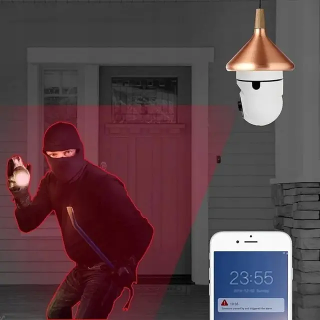Zahvaljujoč WiFi kameri v obliki žarnice boste zavarovali svoj dom kot še nikoli doslej. Zahvaljujoč najnovejši tehnologiji je bilo mogoče v majhno žarnico z navojem E27 (združljivo z večino svetilk) vgraditi optiko, ki snema sliko v kakovosti 2 Mpx. Napravo upravljamo z nivoja aplikacije , ki jo enostavno prenesete na svoj telefon. Odslej lahko tudi ob odhodu na dopust nadzirate dogajanje v vašem domu!