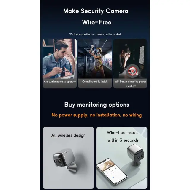 Podaljšana življenjska doba baterije: Izkusite neprimerljivo delovanje baterije z našo WiFi kamero z dvojnim objektivom in nizko porabo. Zasnovana za daljše delovanje, ta kamera zmanjšuje porabo energije, kar omogoča dolgotrajno opazovanje in spremljanje brez pogostega polnjenja. Idealna je za spremljanje hišnih ljubljenčkov, zunanjo varnost ali nadzor oddaljenih lokacij, kjer je dostop do električne energije omejen. Njena zasnova z nizko porabo zagotavlja neprekinjeno snemanje in opozorila, kar zagotavlja brezskrbnost pri spremljanju vašega doma, hišnih ljubljenčkov ali posesti. Učinkovit sistem upravljanja z energijo optimizira porabo baterije, zaradi česar je zanesljiva rešitev za dolgoročne potrebe spremljanja. Združljiva z različnimi viri napajanja za prilagodljivo uporabo.